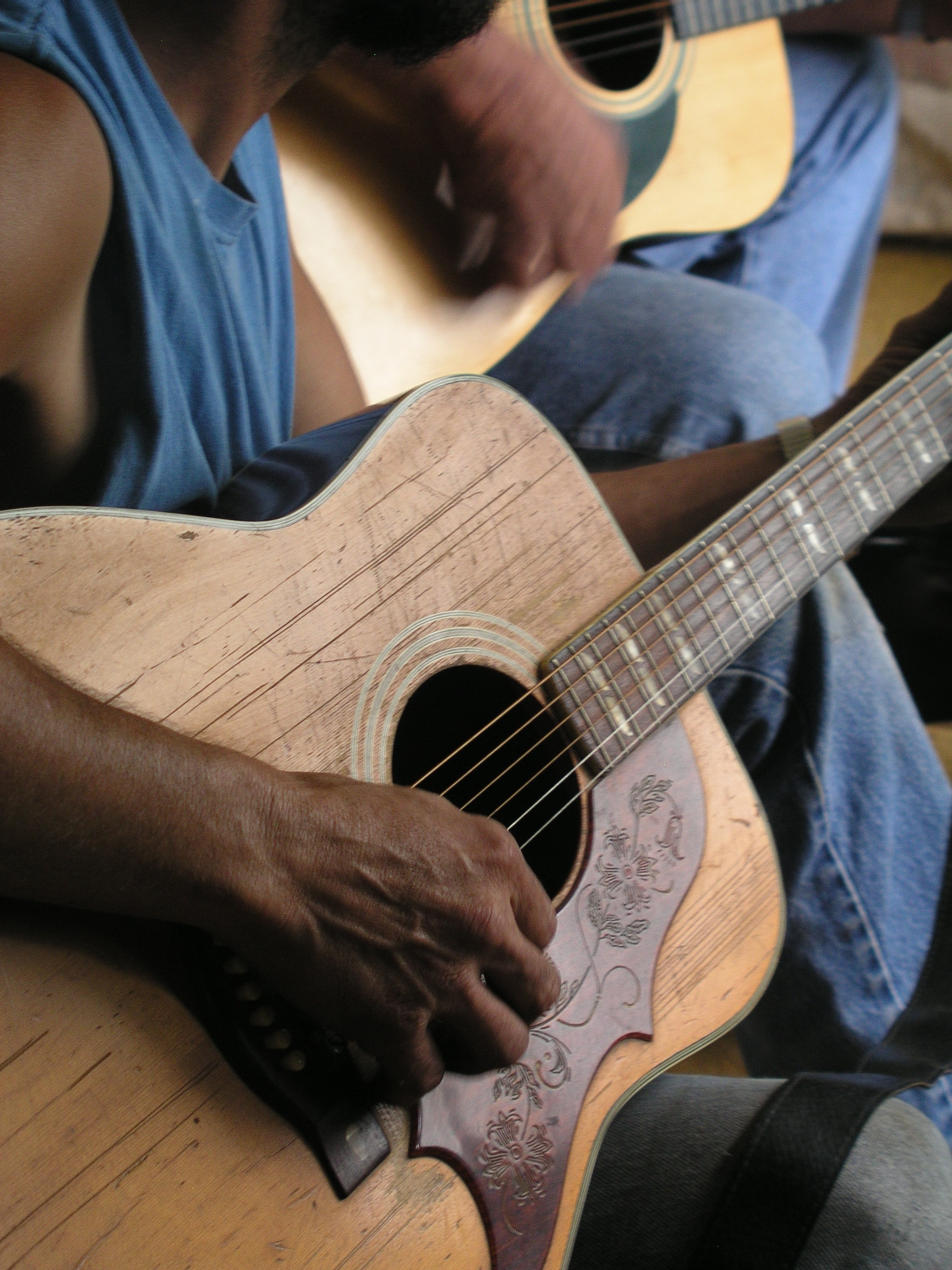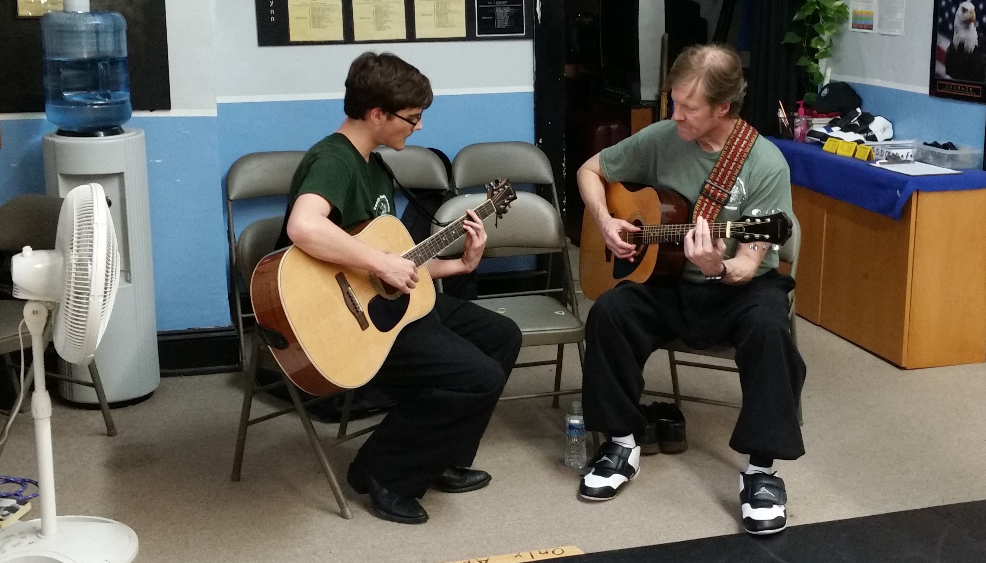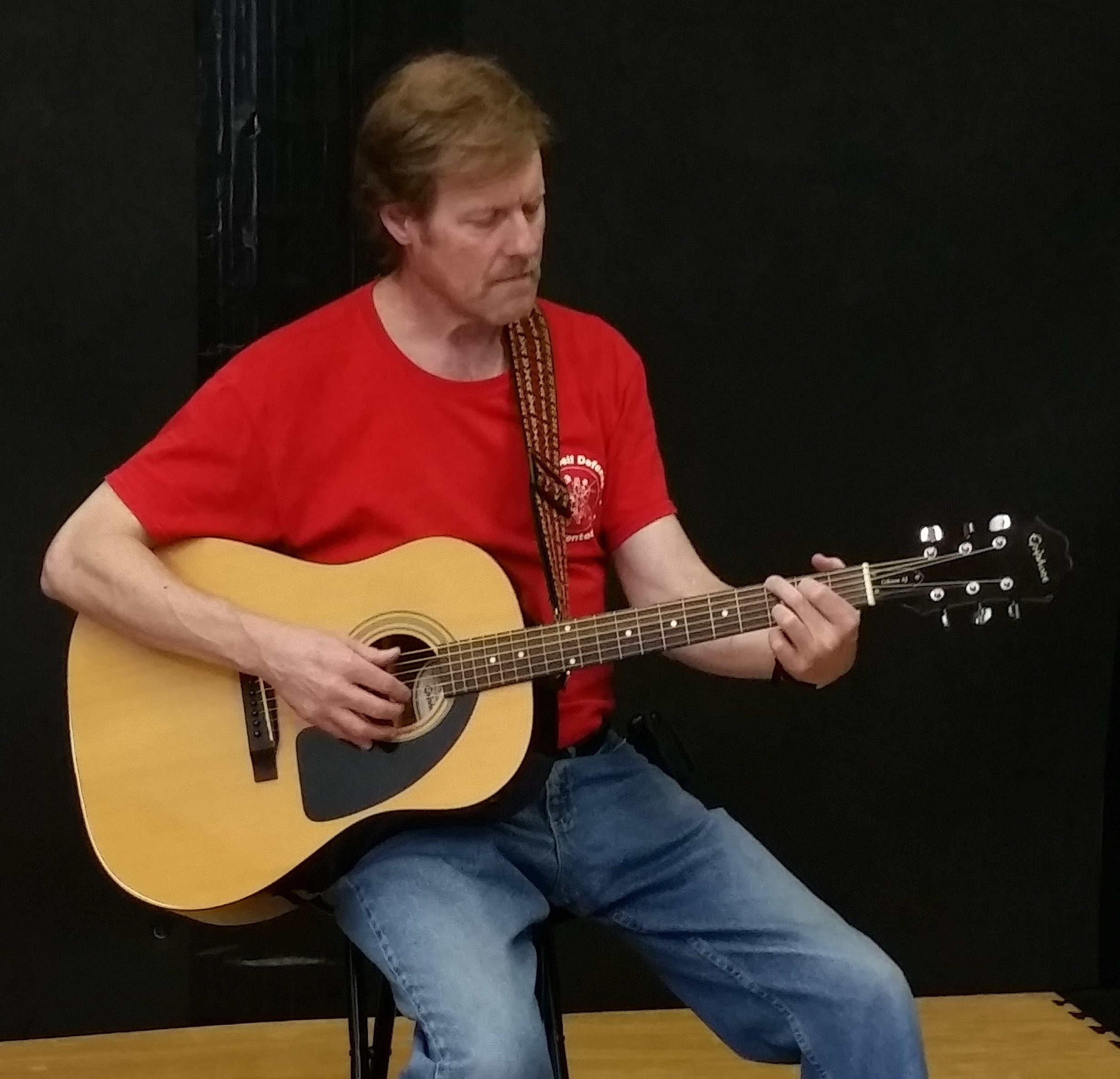 I teach the same way I learned in the Appalachian Hills of northeast Tennessee in the 1970's. My Aunt Lena said, "Son ... you don't need to read notes to make music; learn three or four chords, learn to slap rhythm, and you can play anything you want." |
