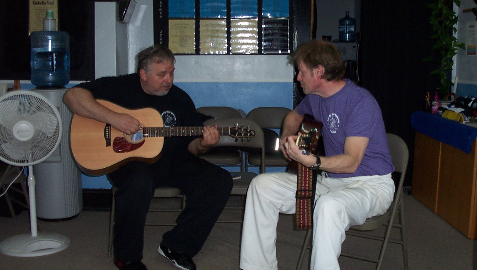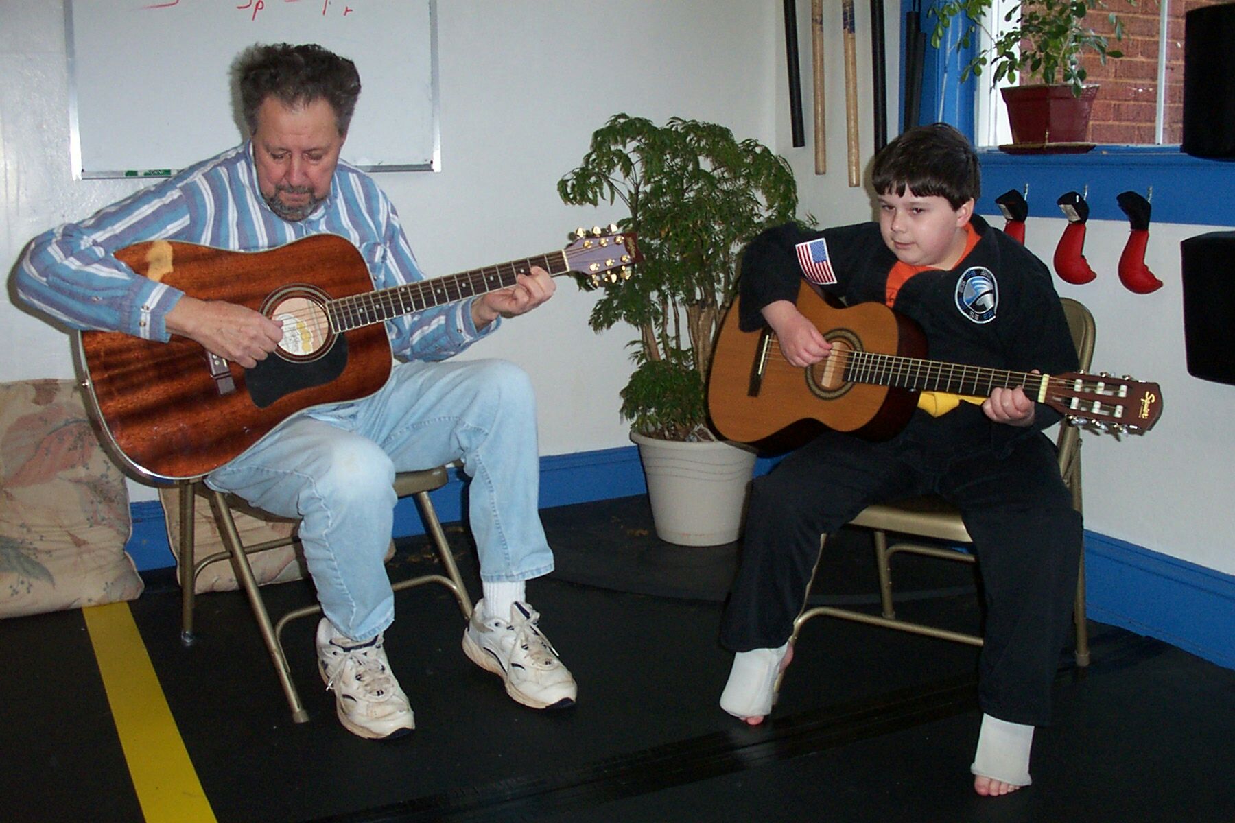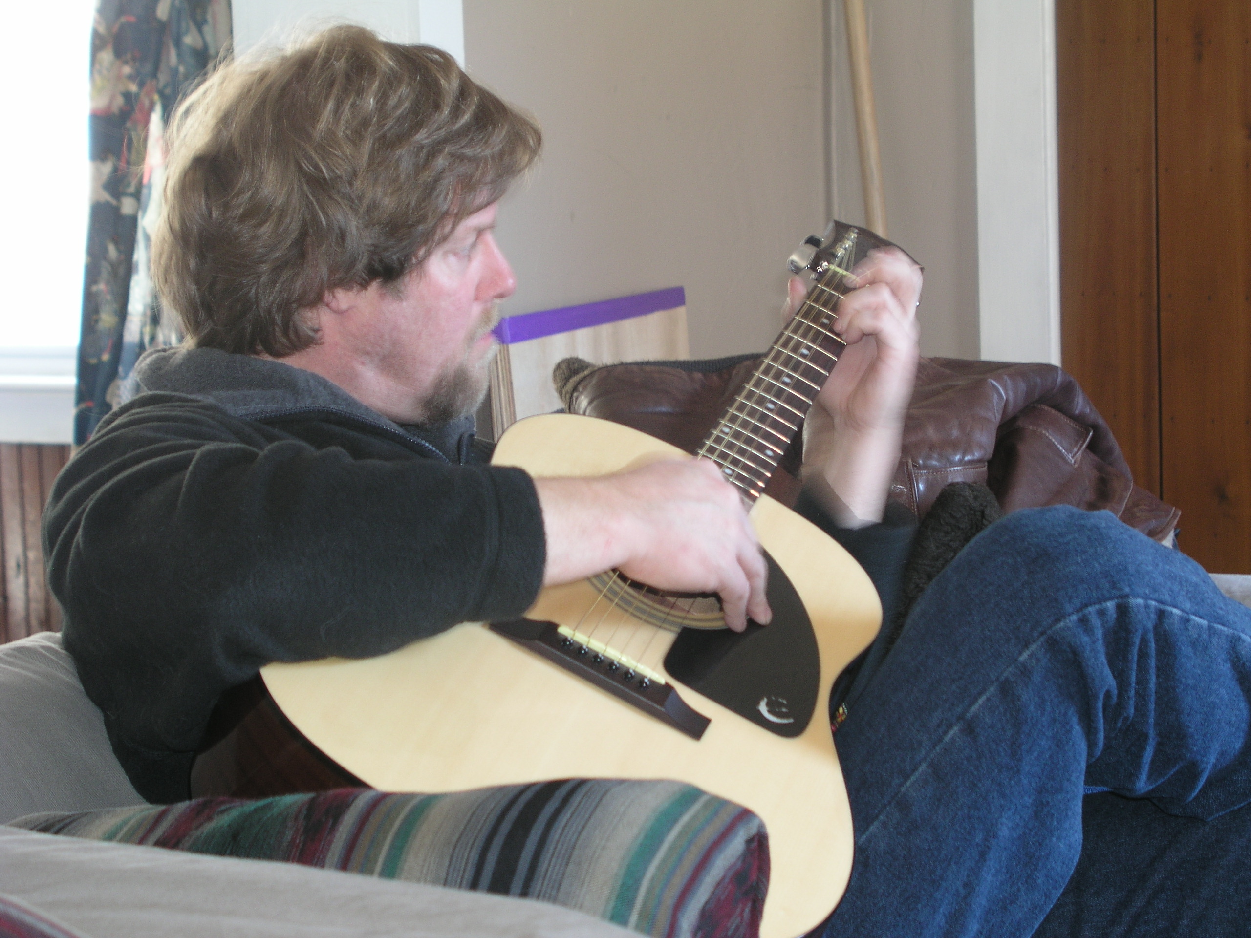 I teach the same way I learned in the Appalachian Hills of northeast Tennessee in the 1970's. My Aunt Lena said, "Son ... you don't need to read notes to make music; learn three or four chords, learn to slap rhythm, and you can play anything you want." |