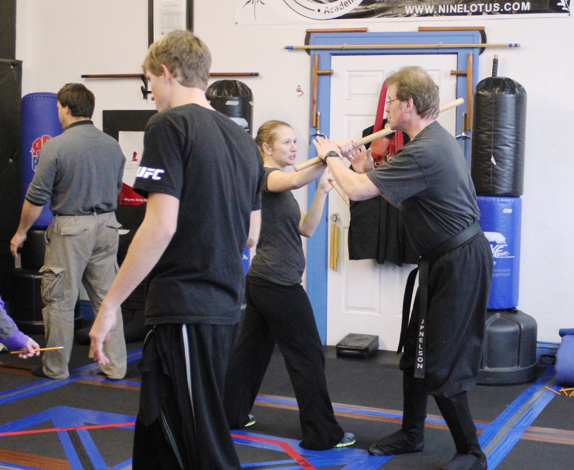Earn a Black Belt in Goshin-Jutsu. Round-Kicks, Spinning-Techniques, and Jumping Chicken Kicks in a skirt, dress slacks with coat & tie, high heels, or for a disabled person just isn’t practical. Also, many folks just want to get to the basics of self-protection. The techniques in this program are taken from the martial arts of T'ai Chi, Wing Chun, Philippine Stick Fighting and Taijutsu. You will learn: • Elbow and knee strikes • Eye gouges, groin strikes and hair-pulling takedowns • Fundamentals of stick-fighting (translates to a walking cane) • Learn to apply leverage instead of strength • Use ink pens and other small articles as weapons Do you have a question about an assault that you or someone you know has experienced? Perhaps you have a “What if” type question. Bring it to class and let’s explore the solutions together. Goshin-Jutsu is ideal for: • Single women • Mothers with small children • Men and Women with various disabilities • Couples who wish to train in Self Defense together • Elderly Folks • Anyone who simply want to know self defense without flash or flare Come and apply for a Free Trial Week |