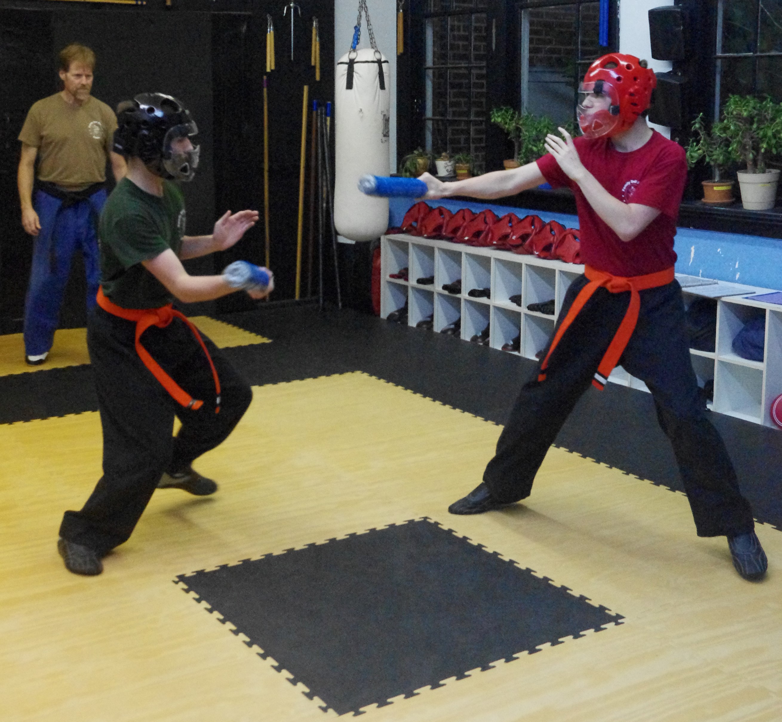 Adult, Teen, and Junior Students alike begin not only learning Forms, but how to exchange techniques and actually spar with the weapon. So-called Tournament World Champions in Weapon Forms are a-dime-a-dozen, and their forms are pretty ... but if you cannot fight with your weapon, then you are just dancing. NOTE: We are not teaching Sport Fencing, this is actual Weapons Combat Sparring including kicks & grabs. You will Fight the way you Train!!! |