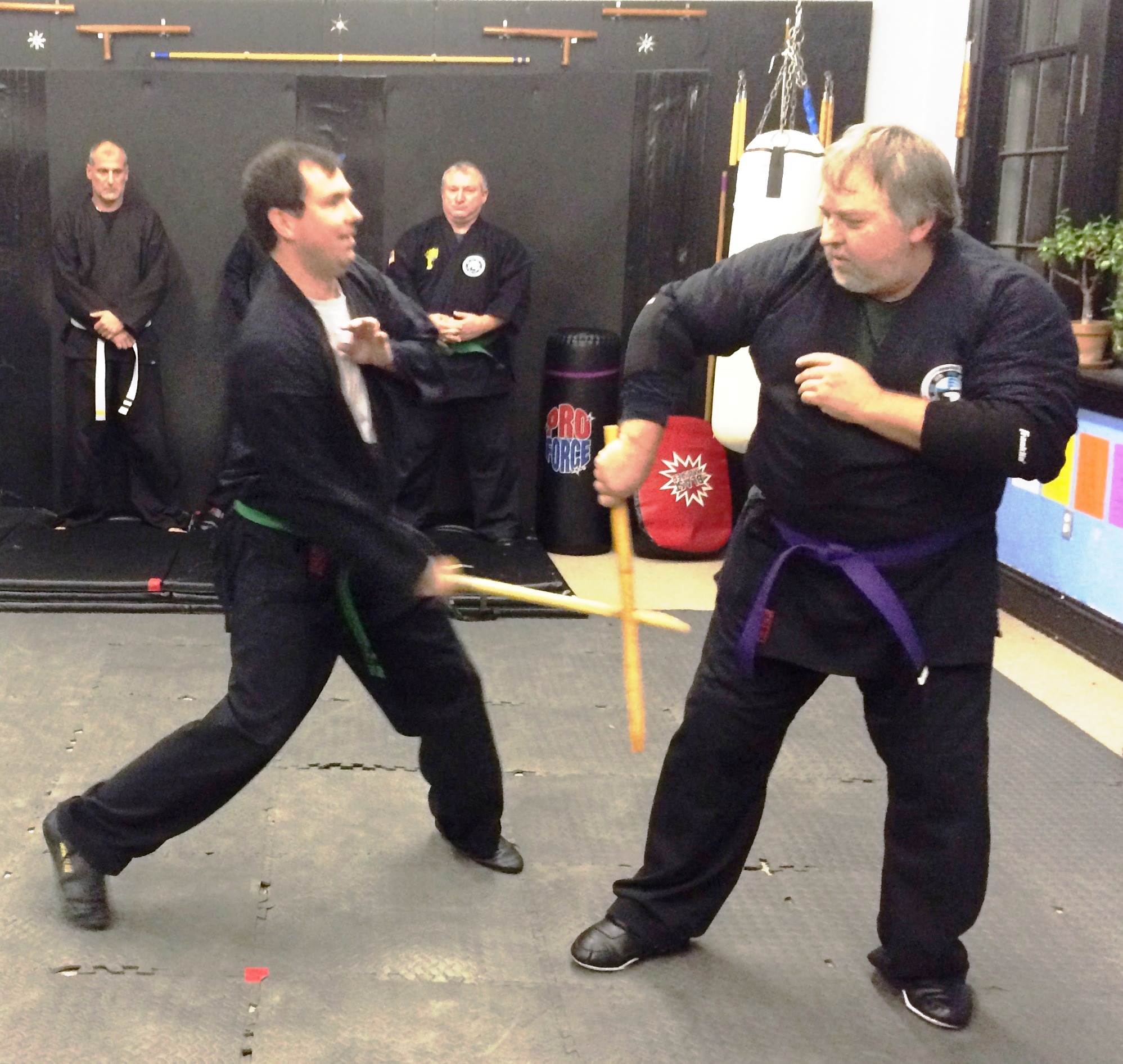 Adult, Teen, and Junior Students alike begin not only learning Forms, but how to exchange techniques and actually spar with the weapon. So-called Tournament World Champions in Weapon Forms are a-dime-a-dozen, and their forms are pretty ... but if you cannot fight with your weapon, then you are just dancing. NOTE: We are not teaching Sport Fencing, this is actual Weapons Combat Sparring including kicks & grabs. You will Fight the way you Train!!! |